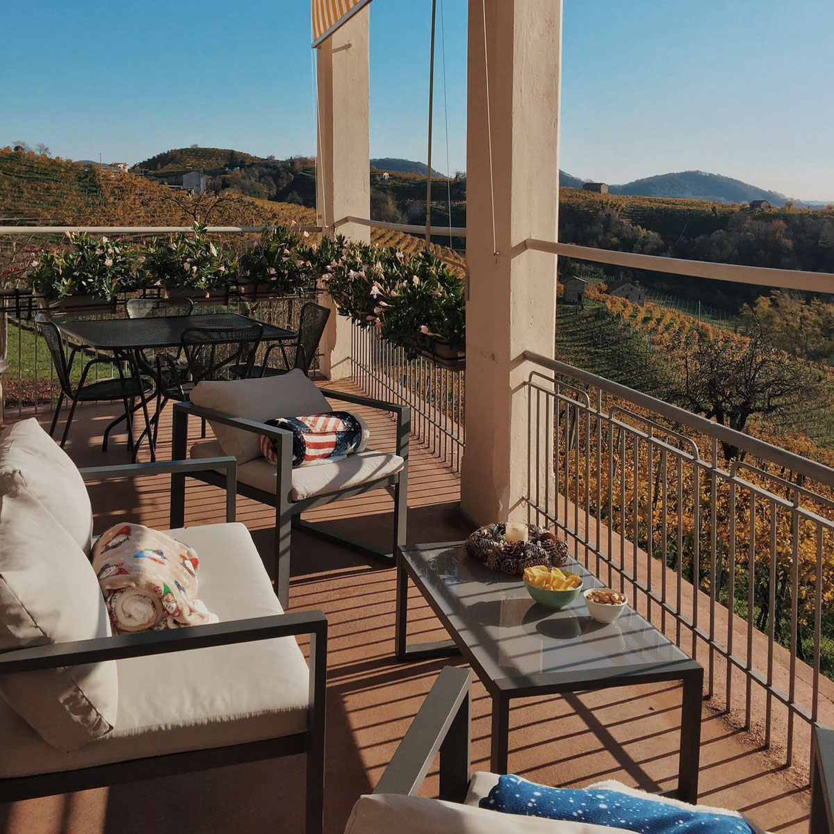 Alla Terrazza, ogni sguardo si perde tra i filari del Prosecco, patrimonio UNESCO, e l’orizzonte che guarda alle Dolomiti e a Venezia. Un territorio unico, fatto di panorami suggestivi e di una cultura enogastronomica che racconta secoli di storia. Qui, tra natura e tradizione, il tempo sembra fermarsi per lasciare spazio alle emozioni più vere: un luogo che vive della sua terra e che invita a scoprirla, calice dopo calice.